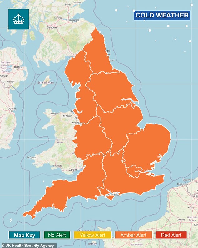 Amber cold weather health alerts have been issued by the UK Health Security Agency until Sunday, meaning severe impacts across health and social care services are expected.