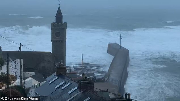 The Met Office warned peak gusts of ‘100mph or more’ were expected in exposed areas of the Cornwall and the ‘violent gusts’ could ‘persist for two to three hours’.