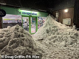 Forecasters said accumulations of 10cm (4in) to 15cm (6in) are ‘likely fairly widely’ within the amber warning – with between 20cm (8in) and 30cm (1ft) possible in some locations, mainly on hills above 200m (650ft) elevation in Wales and the Peak District.