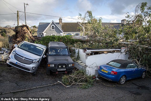 Fallen trees caused carnage during Storm Goretti on the roads in Falmouth, Cornwall. One Cornish man died during the storms after a tree crushed the caravan he was inside