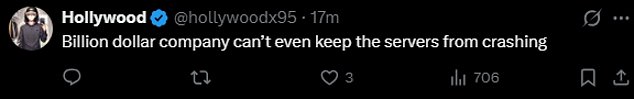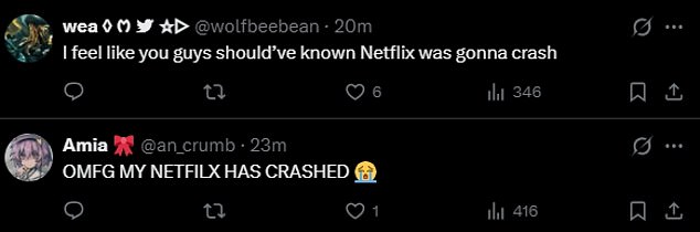 ‘Billion dollar company can’t even keep the servers from crashing,’ a fan typed, and one shared, ‘I feel like you guys should’ve known Netflix was gonna crash.’