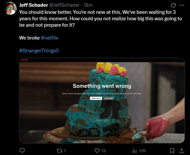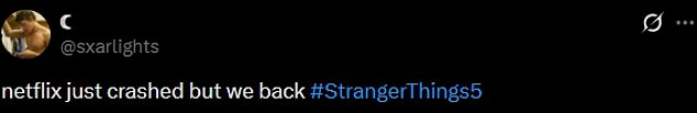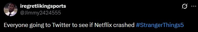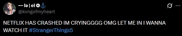 Some fans were sent into a meltdown with one penning on X,’ NETFLIX CRASHED HAHAHAHAHAHAHA #StrangerThings5′