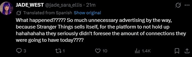 ‘What happened?????? So much unnecessary advertising by the way, because Stranger Things sells itself, for the platform to not hold up hahahahaha they seriously didn’t foresee the amount of connections they were going to have today????’ a fan also penned.