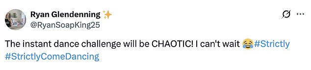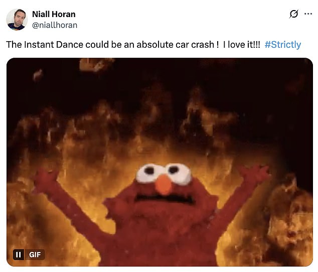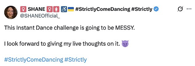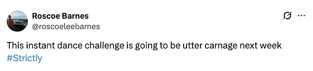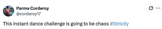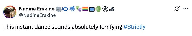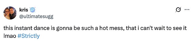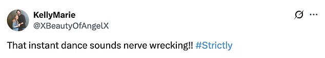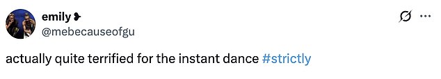 They tweeted: ‘The Instant Dance could be an absolute car crash ! I love it!!!’; ‘actually quite terrified for the instant dance’.