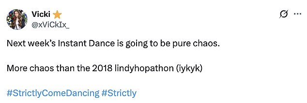 ‘this instant dance is gonna be such a hot mess, that i can’t wait to see it lmao’; ‘Next week’s Instant Dance is going to be pure chaos. More chaos than the 2018 lindyhopathon (iykyk)’.