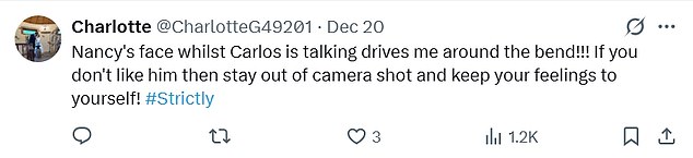 Fans were quick to note that Nancy did not tag Carlos in her post, with some viewers quickly drawing their own conclusions in the comments.