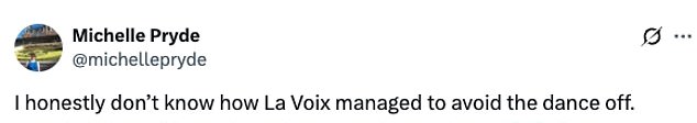 Viewers were left well and truly bemused by the result with dedicated La Voix fans even declaring that the star deserved to be in the bottom two, taking to X they said: ‘La Voix robbed someone of a place in next week’s show, Strictly is FIXED’: