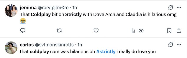 ‘That Coldplay bit on Strictly with Dave Arch and Claudia is hilarious omg’,