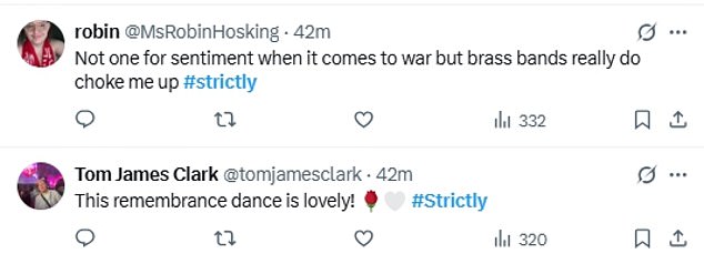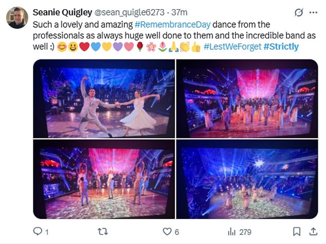 ‘Such a lovely and amazing #RemembranceDay dance from the professionals as always huge well done to them and the incredible band as well.’