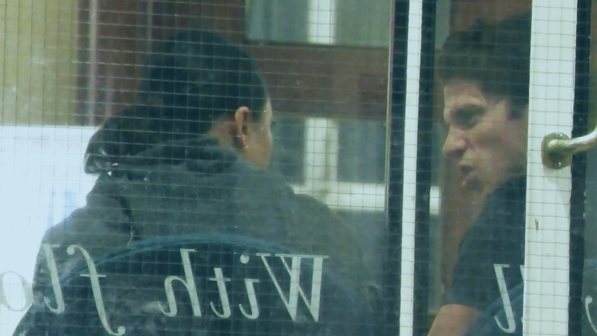 An onlooker said looked serious as they stepped aside for a break from the studio.