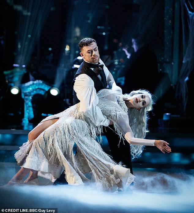 Speaking to host Claudia Winkleman with tears running down her face, Vicky said: ‘I hated going first! Honestly, I loved this dance this week because for once I had a foundation to build on.