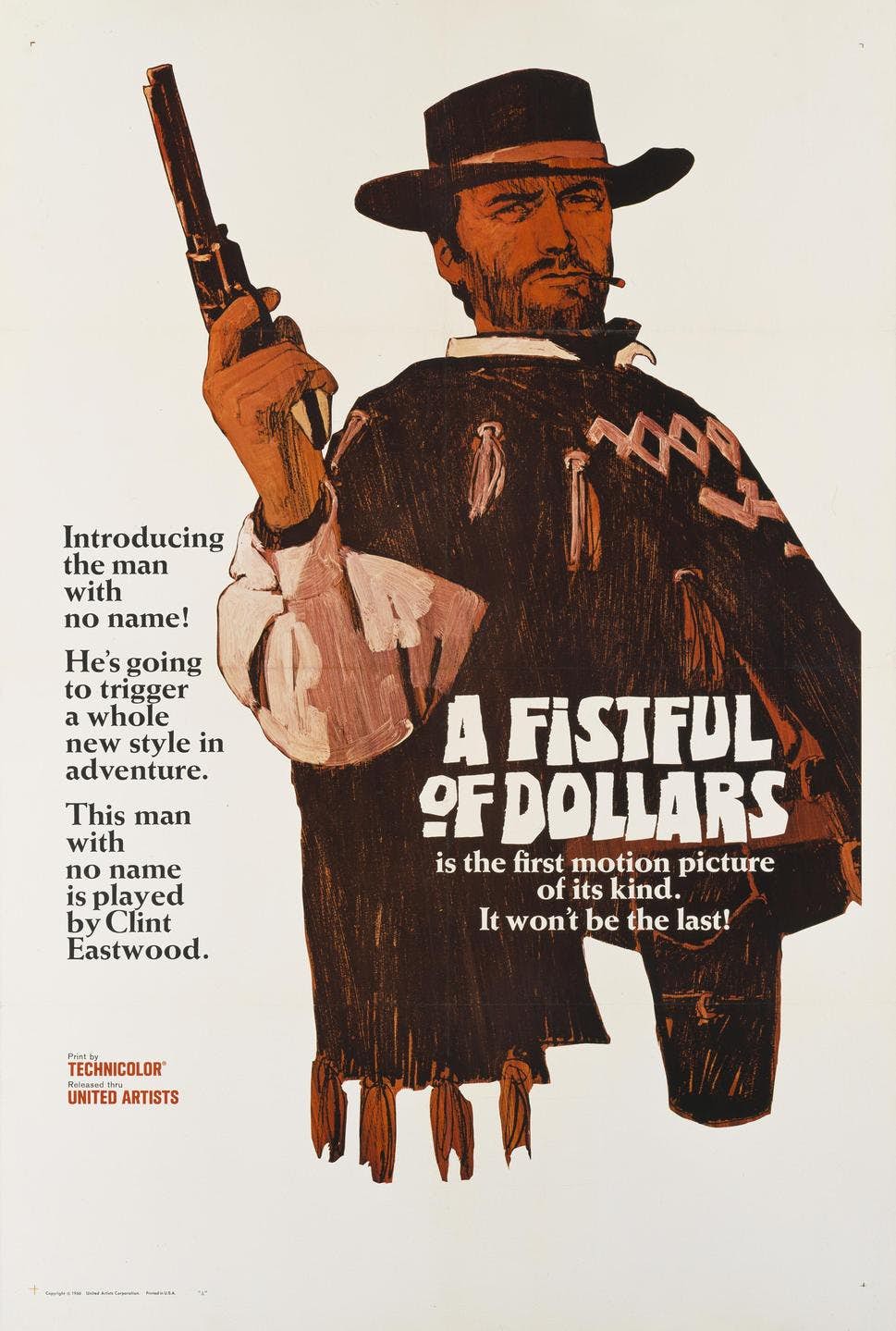 Being a TV series, Rawhide couldn’t let any one player become too important — and couldn’t, therefore, afford Eastwood the isolation he felt his persona needed. But after a few years on the show he got what turned out to be a huge break when he was invited to, of all places, southern Spain to make, of all things, an Italian cowboy movie. Graphic and gratuitously violent, with overtones of opera and undertones of Bond, Sergio Leone’s A Fistful of Dollars turned Eastwood into the ’60s emblem of fatal bad-shave cool.