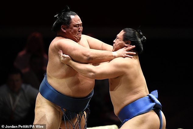 Sumo stars take over London: Sold-out crowd watches first night as 25 STONE fighters dazzle Royal Albert Hall – after drinking Guinness and visiting McDonald’s