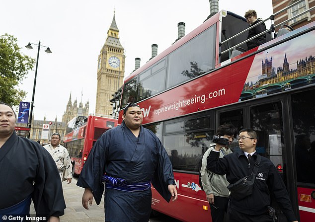 Londoners on their morning commute have been left perplexed at the sight of the world’s best sumo wrestlers strolling the streets of the capital this week.
