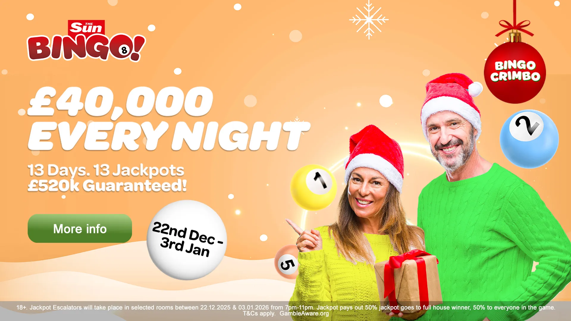 PLAY in Sun Bingo’s Christmas bingo games with £40,000 to be won every night.