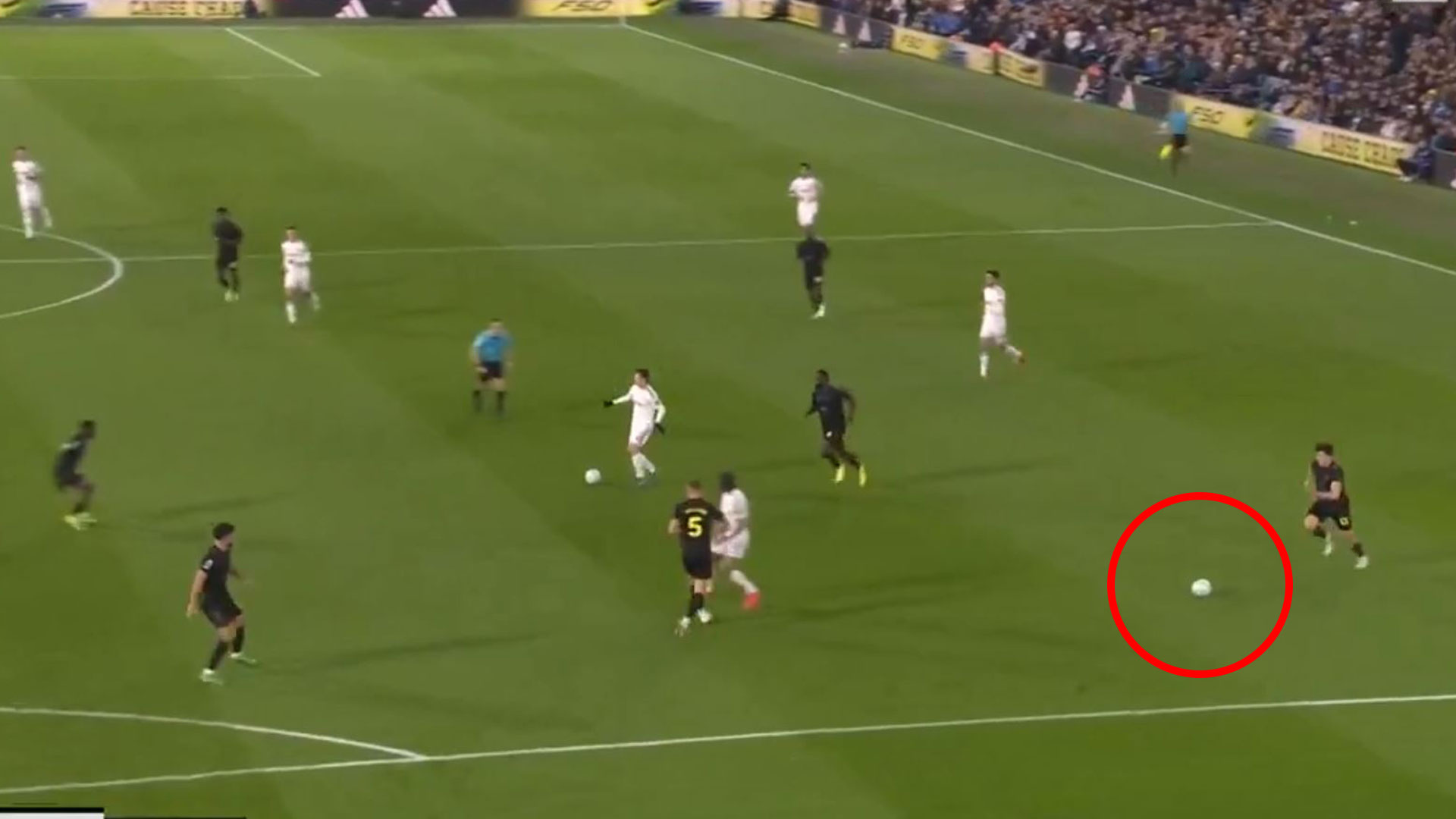 And with one touch, he deliberately tried to pass it towards Leeds ace Brenden Aaronson, who had the actual matchball.