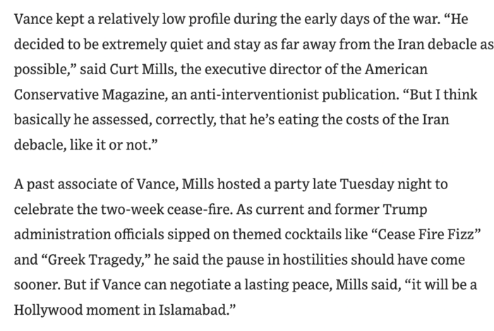 These moves were announced at TAC’s Spring party in early April, an event where TAC’s coverage of the Iran war was written up favorably in the Wall Street Journal. Per WSJ: