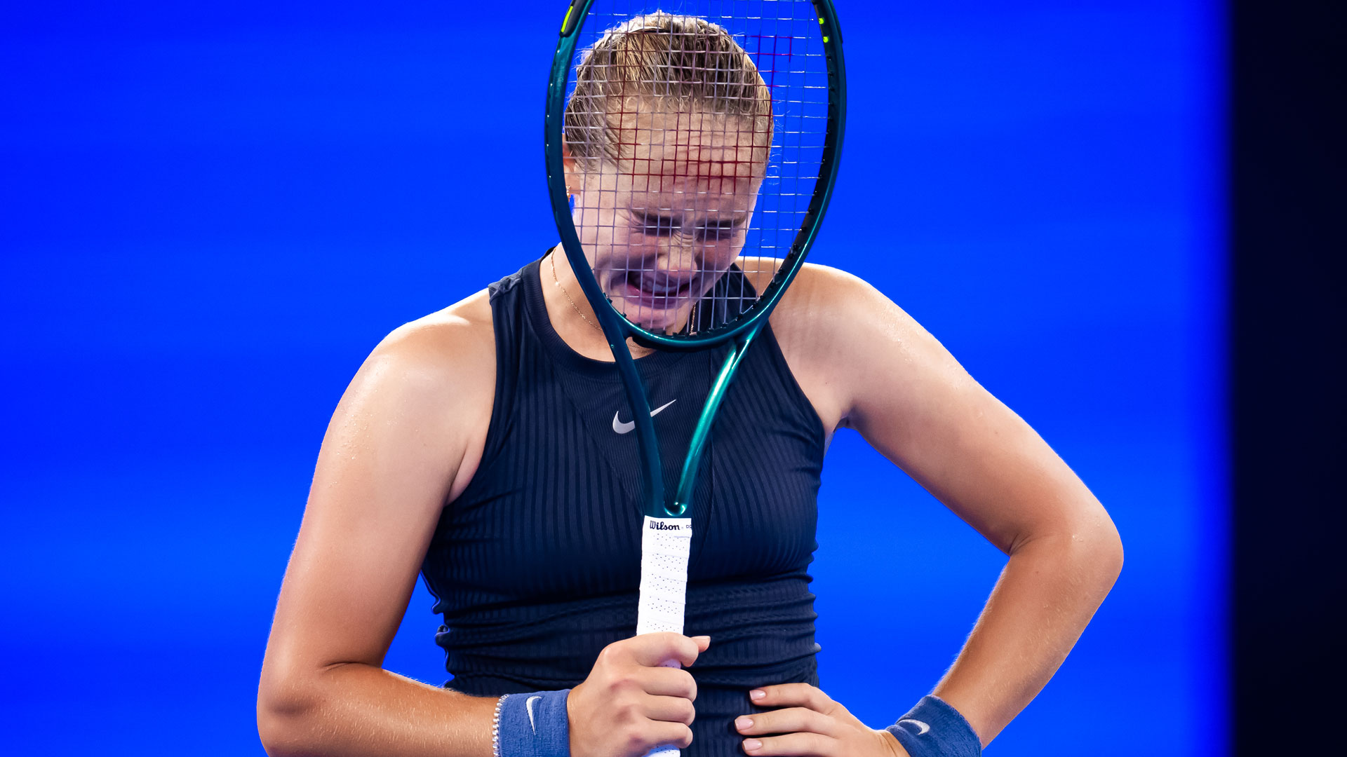 And while playing in Montreal this summer, she repeatedly punched herself in the leg while losing to McCartney Kessler.