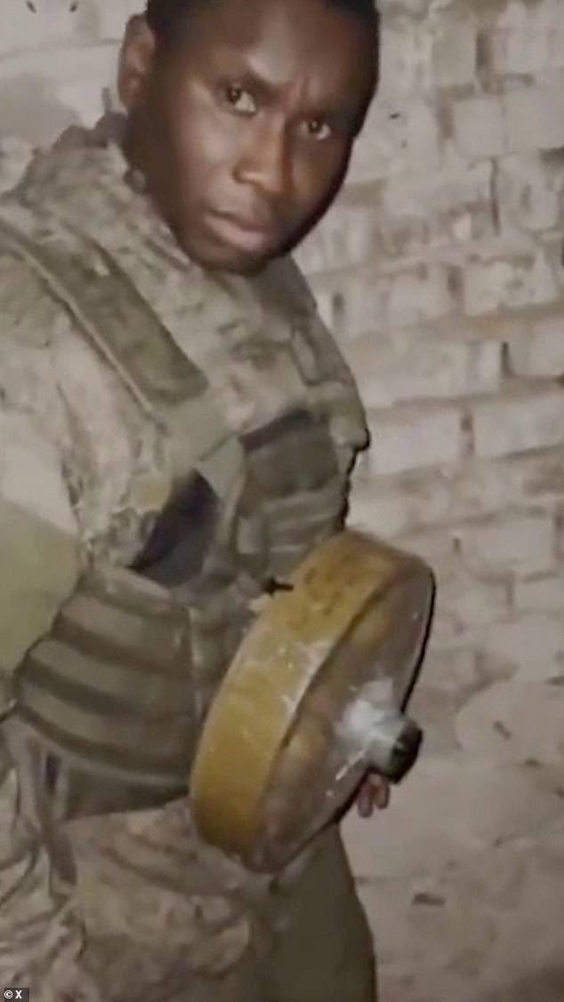 The African mercenary, recruited to take part in Russia’s barbaric war against Ukraine, is being held at gunpoint by one of the soldiers he is supposed to be fighting alongside.