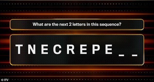 They faced the question: ‘What are the next two letters in this sequence?’, while being shown T N E C R E P E.