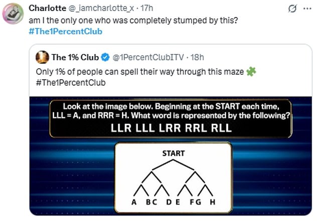 Others didn’t find it so easy, writing: ‘Didn’t even understand the 1% question nevermind the answer’