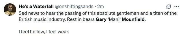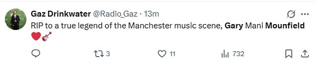 ‘RIP to a true legend of the Manchester music scene, Gary Mani Mounfield.’