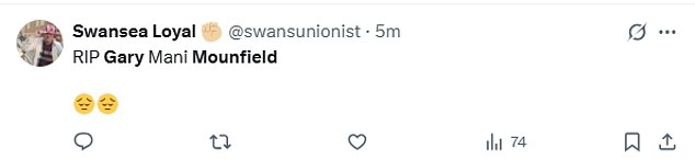 ‘RIP Mani My thoughts and prayers are with his family at this sad time.’