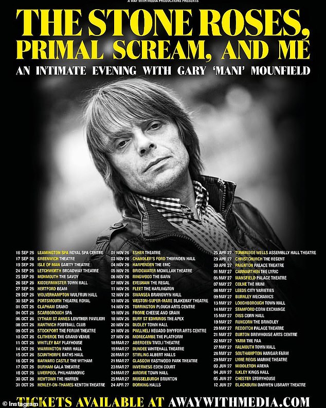 He was due to recount his experiences at various venues across the UK between September 2026 and June 2027, looking back on moments such as the iconic 1990 Spike Ilsnad gig, as well as the Stone Roses’ comeback stadium tour.