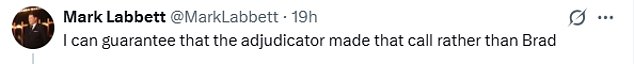 However, Mark came across this comment and responded: ‘I can guarantee that the adjudicator made that call rather than Brad.’