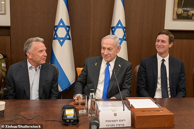 Jared Kushner and Trump’s special envoy Steve Witkoff were pictured on Thursday alongside Israeli Prime Minister Benjamin Netanyahu to announce the landmark peace settlement