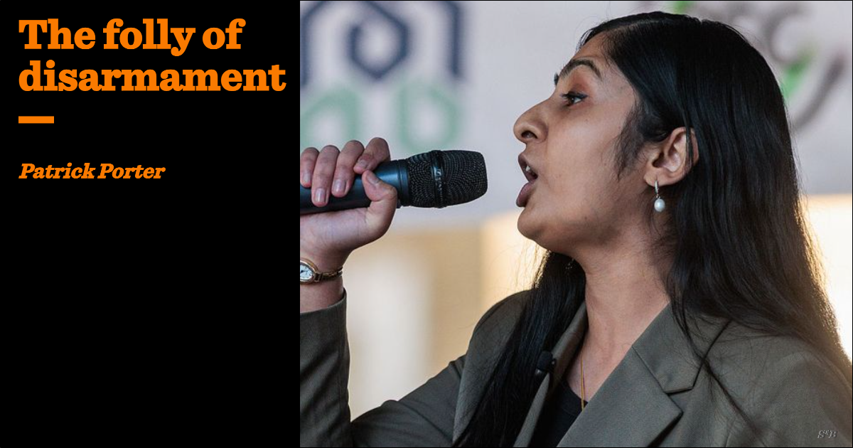British or Western disarmament would likely enable a larger process of unchecked imperial expansion, followed by war, but worse, because states would have to scramble against the clock to arm themselves. Were NATO Europe to run the experiment and defund defence, a plausible scenario would be a rearmed and mobilised Russia seizing parts of the continent. But it is hard to weigh up such scenarios if you live in a rhetorical world of absolutes.