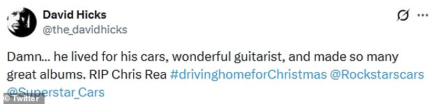 Tributes swiftly flooded in for the star on Twitter, with many referencing his music, his love of cars and the cruel irony of his passing being so close to Christmas