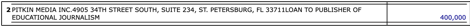 Moreover, the address for Pitkin Media (4905 34th Street South, Ste. 234 in St. Petersburg, FL) is a UPS Store located in a strip mall.