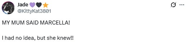 ‘MY MUM SAID MARCELLA! I had no idea, but she knew!!’