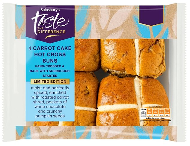Sweet-toothed fans might be reaching for dessert-inspired versions of the seasonal snack, like M&S‘s Tiramisu or Red Velvet buns, Sainsbury’s carrot cake.