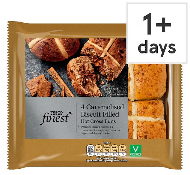 One of the most decadent and highly anticipated hot cross buns this spring is Tesco’s caramelised biscuit variety.