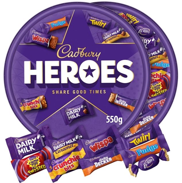 A 550g tub of Cadbury Heroes now costs £7 at Tesco, working out at around 12.7p per chocolate