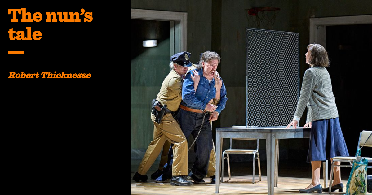 The story itself is based on the memoirs of Sister Helen Préjean and is best known through the Tim Robbins film with Susan Sarandon and Sean Penn. And there is a filmic, almost documentary feel to the opera, though McNally’s expert libretto fillets, expands, highlights and dwells in a highly cunning manner that again never feels artificial, though of course it really is. Opera’s superpowers — the soliloquy aria, the duet, the ensemble — are fully exploited. It’s not just the nun and the killer: we also get the Order’s home-base work with kids from the projects, the prison governor and chaplain, most importantly the families of the slaughtered teenage lovers and of Joseph — plus the initial crime, in unsparing detail, and the final execution, ditto. The scenes are interleaved, seamlessly and without a break, the drama absolutely compelling and paced.