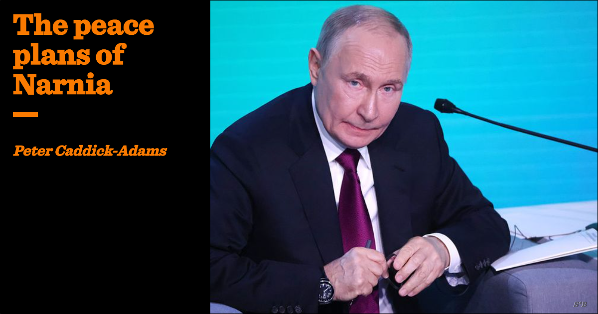 Meanwhile, the war grinds on, with Putin demonstrating his commitment to peace by hitting apartment blocks nightly with his missiles, killing innocent civilians, and continuing relentless military pressure on the former mining town of Pokrovsk, now deserted, but once home to 60,000. It is an important logistics hub in eastern Ukraine where the urban battle has ebbed and flowed for more than a year. Stoutly defended by Ukraine’s 7th Air Assault Corps, its 425th Assault Infantry Regiment, a unit trained in urban warfare tactics and deployed as a “fire brigade” in critical sectors, are in the vanguard. Its infantry fireteams, backed by drones and artillery over the weekend have reportedly cleared the town centre and railway station of Kremlin troops, but Moscow’s news organisations claim the same for their men and the situation remains unclear.