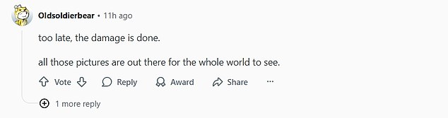 Commenters on Reddit were perplexed by the missing photos as one wrote: ‘Why delete their pic, we saw them at the party?’