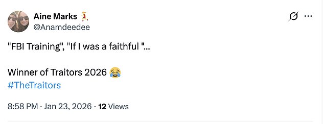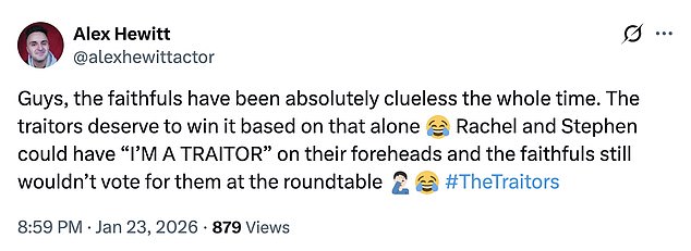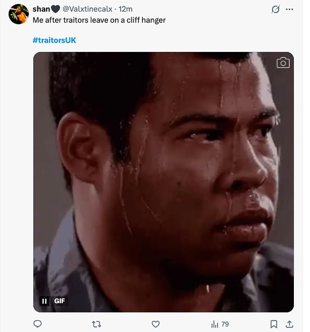 One viewer penned: ‘Jesus Christ that cliffhanger #thetraitors #traitorsuk.’