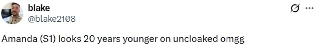 ‘Amanda (S1) looks 20 years younger on uncloaked omgg.’