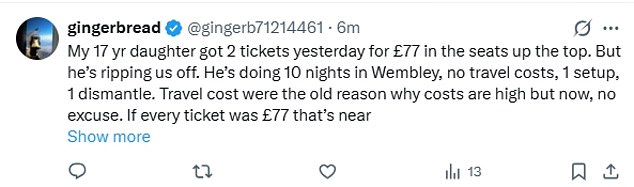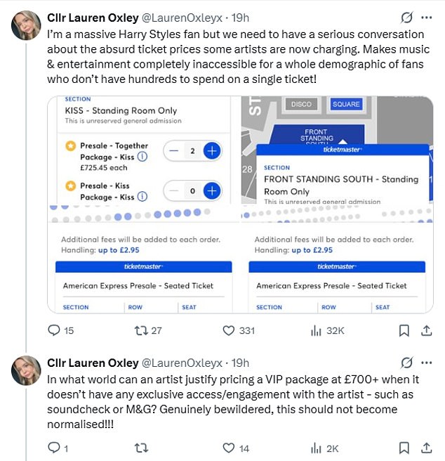 With seats and standing tickets for the London shows ranging from £44 to a £466.24, some fans blasted Harry for making concerns ‘inaccessible’