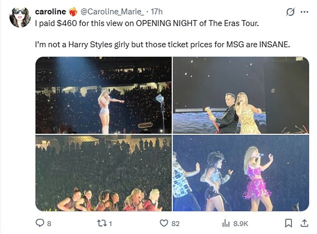 Meanwhile fans waiting in the online queue for tickets to see Harry in New York’s Madison Square Gardens, were told: ‘Tickets for this event have been priced in advance by the tour from $50 to $1,182.40, including service fees.’