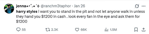 ‘Harry Styles I want you to stand in the put and not let anyone walk in unless they had you $1200 in cash. Look every fan in the eye and ask them for $1200;’
