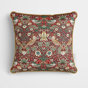 A timeless print by 1800s designer William Morris, this cushion graces an armchair in the library.