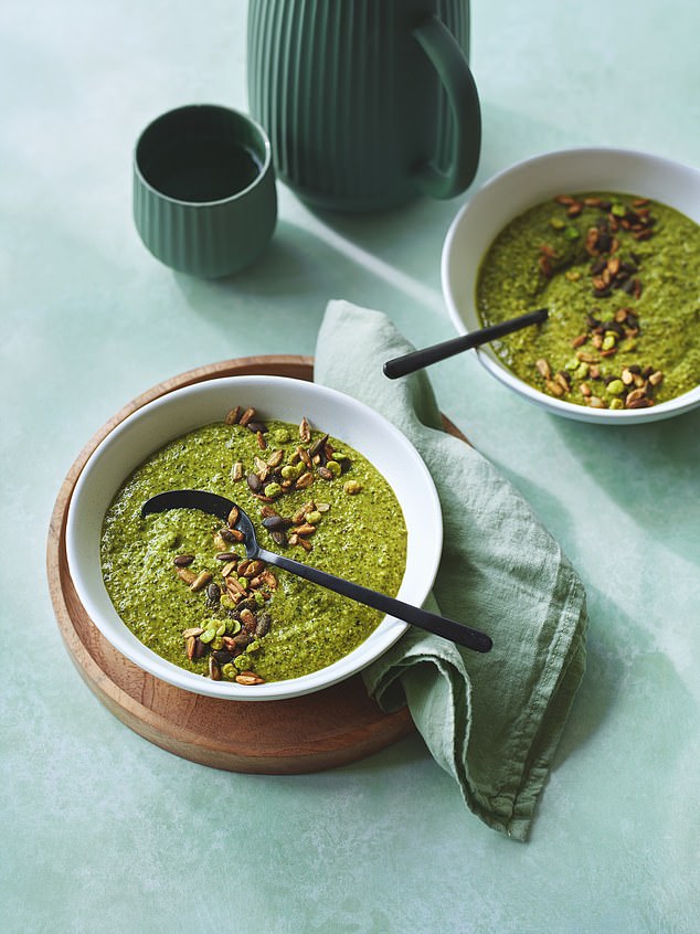 3. Remove from the heat and add the lime juice. Then use a blender to blitz until smooth. Season and serve with a sprinkling of crunchy seeds.