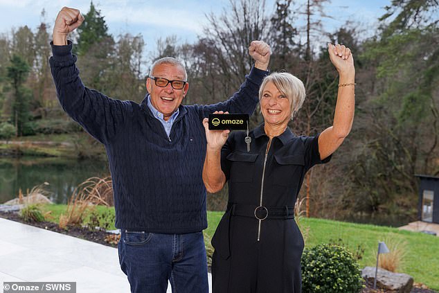 Nicola Dickinson, 59, pictured with husband Martyn became an instant multi-millionaire when she won a £4.5million mansion