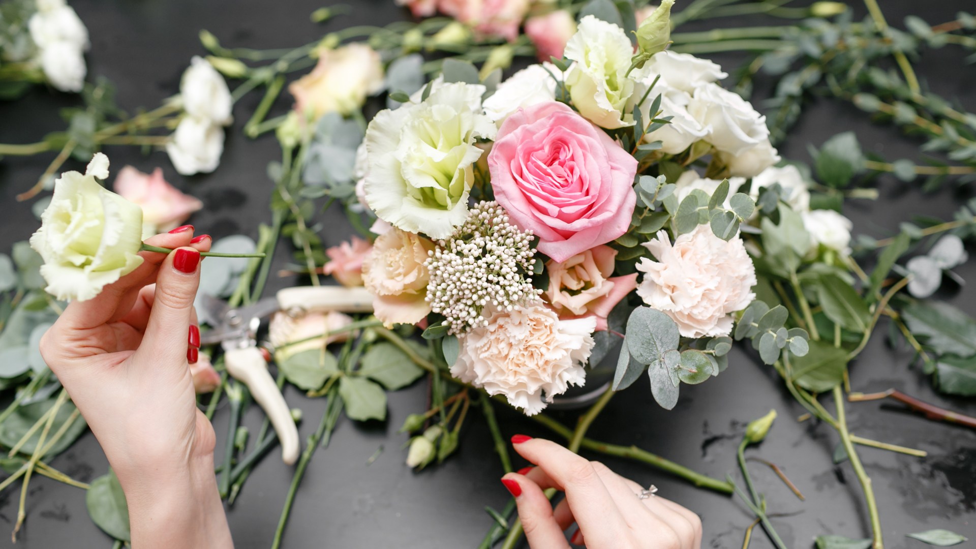 Great options include roses, carnations, gypsophila (baby’s breath), eryngium (sea holly) and lavender.