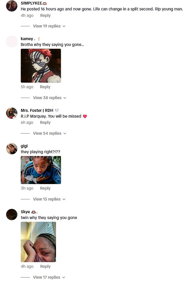 Brotha why they saying you gone…’ another posted while another said: ‘R.I.P. Marquay. You will be missed [heart emoji]’